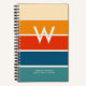 Cahier personnel tendance avec de larges rayures de couleurs rétro. Grand monogramme centré et nom associé. Typographie sans serif minimaliste propre et simple. Entièrement personnalisable. Idée de cadeau géniale ou à accumuler pour vous-même.