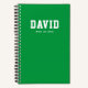 Comme il est excitant que vos enfants rentrent maintenant à l'école et qu'ils vont apprendre tant de choses ! Voici un cahier à couverture souple à règle large, un article scolaire indispensable pour votre élève. Couleur de fond verte personnalisable pour correspondre à la couleur préférée de l'enfant ou aux couleurs de l'école, personnalisé avec le nom et la typographie personnalisable pour la matière scolaire dans ce cas notes et idées.