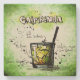 Part of a fun series of bartender's guide designs with drink recipes. This one for a Caipirinha made with white rum, one half of a lime and brown sugar over ice cubes.