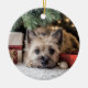 This adorable Christmas ornament, featuring a Cairn Terrier lying under a Christmas tree, is a wonderful gift for any Terrier lover.