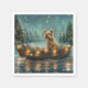 Set sail into the magic of the holiday season with this beautifully detailed illustration, showcasing a proud dog sitting in a festively decorated boat, gliding across a serene Christmas lake. The twinkling lights from nearby pine trees reflect off the water, casting a warm, festive glow that enhances the cozy ambiance. Ornaments dangle from the boat's sides, while glowing lanterns light the way, creating a scene that captures the true essence of Christmas warmth and joy. This nostalgic artwork brings a touch of holiday magic to any space, perfect for those who cherish the spirit of the season.