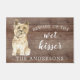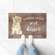 Funny beware of the wet kisser" Cairn Terrier Dog door mat set on a rustic faux background. Visit our shop to view a large assortment of dog breads