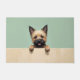 The soft sage mint green background adds a fresh and natural feel, perfect for welcoming entryways. Designed with extra space at the top and bottom, it allows easy personalization with names, welcome messages, or custom text—making it ideal for unique dog-themed doormats and thoughtful gifts.
