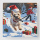 Cairn Terrier Running in Snow with Christmas Hat Square Wall Clock