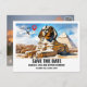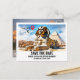 A beautiful watercolor painting of the Sphinx and pyramids of Giza in Cairo, Egypt, appears on the front of this invitation and the back has a template for the wedding couples photograph. Black bold templates appear against a stark white background and may be personalized to suit your special wedding requirements. The back has a template for your qr code, which may be deleted if not required and the front has the silhouette of an airplane with a dotted line behind it marking its flight path up towards the name of your destination. These are ideal for Egyptian destination weddings.