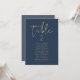 This table number seating chart features an edgy handwritten font and modern minimalist design with navy blue and gold colour combination. Easily change the number and the names along with all of the colours to fully match your event.