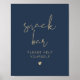 This snack bar sign features an edgy handwritten font and a modern minimalist design with a modern navy blue and gold colour combination. Easily change font colours and background colour to match your event style. Pair with additional items from the CAITLIN Collection for a cohesive look.