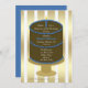 This elegant Cake Surprise 50th birthday party invitation features a chocolate cake with blue accents on a gold and white background. A great invitation for a surprise 50th birthday party. Copyright henishouseofpaper