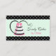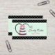 © 2016 Socialite Designs. Our original cake designer business card incorporates a partial heart, calligraphy swirl, elegant cake with a black and white polka-dot border. The striped mint green background makes the cake design stand out. You can customize the font(s) to suit you. Let your baking business stand out of the ordinary with these lovely business cards.