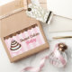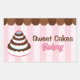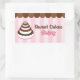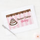 A cute sticker for a cake bakery in pink and chocolate brown. It is bordered with a brown awning and pink stripes background, with a four tiered cake. Edit it to add your own bakery business or personalized name. A sticker great for women-owned bakeries that create custom cakes for weddings, birthdays and other special events, for placing on boxes, packaging, dessert labels and baked goods packaging.