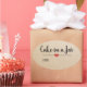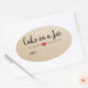 Modern oval "cake in a jar" sticker with a black script font on a kraft paper background embellished by a cute red heart. Customize text.