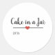 Modern "cake in a jar" sticker with a black script font on a simple white background embellished by a cute red heart. Customize text.