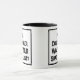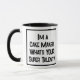 Drôle slogan sur une tasse qui dit "Je suis un créateur de gâteaux. Quel est VOTRE super talent ?" Deux Tone Mug pour un pâtissier. Texte en gras noir et blanc.