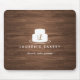 Cake Monogram Logo in White on Brown Woodgrain Mouse Pad