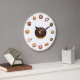 This unique design features various cakes and doughnuts as the numerals with a large doughnut graphic in the centre and would be an ideal decoration in the kitchen. The background and border colours can be changed to suit your own requirements.