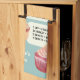 This cute kitchen towel is handy to have around. It features basic baking and cooking measurement conversions with illustrations of yummy cakes and treats set against a light blue background. This towel is ready to be personalized with a name or other message in cream coloured lettering at the bottom.