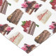 Quirky cake pattern with delicious looking chocolate sponge, cheesecake and gateaux.