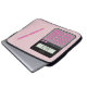 This unusual and quirky Laptop Case features a calculator with pink keys and white lettering and a pink pen. The background and nameplate text can be changed to suit your own requirements.