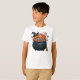 Caldron Of Giggle & Gummies T-Shirt. A cheerful caldron beams, stuffed with candies exploding like confetti, proudly sporting a witch hat. Its broomstick buddy leans close, clearly waiting for sweet-fueled liftoff, Halloween’s happiest sugar-powered witch-mobile!