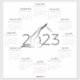 Sticker with calendar for 2023 year for Pilates instructor with pilates reformer pose.