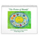Chaque année, je conçois et peins un calendrier sur un thème inspiré. Cette année, j'avais peint des fleurs dans mon processus intuitif de peinture et j'aimais la beauté de leurs couleurs et de leurs formes, et j'ai donc décidé de les incorporer à mon calendrier annuel. Il semblait approprié d'aller avec les fleurs du mois postées en ligne. Pour chaque mois, deux fleurs étaient listées, chacune avec des mots de signification. J'ai choisi intuitivement ceux qui correspondent le mieux à l'ensemble. Je suis tombé sur la citation encerclante dans ma lecture matinale et je savais que cela devait être un cadre pour le calendrier de cette année.