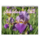 Fleurs voyantes aux nuances de pourpre, de bleu, de jaune et le rouge. Iris géant, champs d'iris, iris silhouettés contre des rhododendrons, lierre et hosta.