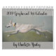 Ce calendrier comporte des reproductions de l'art original des lévriers par Charlotte Yealey