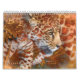 Big Cats Wildlife Art Calendrier des 12 mois / Imaginaire Art to Portraits avec : Léopards des neiges, Lions, Cheetah, Sumatra et Tigers de Malaisie : Lions gardant un temple de la forêt tropicale humide, Cheetah à bout portant au repos, Leopard dans un lagon bleu, ou portrait coloré du visage, Léopard des neiges dans un champ de fleurs de montagne tibétain, et Tigres méditant dans un étang de forêt pluviale éclairé par le soleil levant ou traçant la proie.