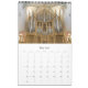 Southern German is the home of many famous pipe organs that are renowned for their exuberant baroque and rococo designs. In this calendar (which is customisable), it is easy to see the joy and passion the builders and artists who created these instruments long ago felt for their creations. Not all organs here are from centuries back - Memmingen is a recent installation by Goll. But one of the biggest tourist attractions in Bavaria - the Wieskirche chapel - is here too. The full list of organ locations is: Wies, Schongau, Rottenbuch, Isny, Memmingen, Würzburg, Scheidegg, Nesselwang, Lindau (two different organs from the same Muenster), Lindenberg, Steingaden. The cover shows one of the pedal towers of the 1766 Riepp organ in Ottobeuren Abbey. The back of the calendar shows the organ and ceiling of St Mang in Fuessen. This design allows only for a single page style; if you want to flip the pages using a central hinge and with a horizontal layout, the same photos are available from our shop on a second version of Organs of Bavaria.