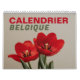 Calendrier de Belgique avec jours fériés en langue française. Belgique avec Jours Fériés en Français. Le calendrier comporte des fleurs et des plantes indiquant les saisons qui changent.
