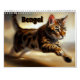 Calendrier avec douze images de chats du Bengale jouant et se reposant.