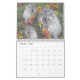 On y voit des chats et chatons de différentes races qui boivent de l'eau, des arbres d'escalades, qui se cachent sous des chaises prêtes à attaquer les orteils, qui font des visages amusants, dans un joli calendrier de dessins de chats.