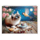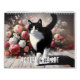 Ce calendrier de 12 mois présente 14 illustrations uniques d'une variété de chats, le tout dans une variété de cadres.