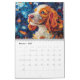 Ce calendrier présente des illustrations colorées de différentes races de chiens dans le style de l'art de la découpe en papier.