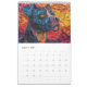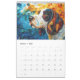 Ce calendrier présente des illustrations colorées de différentes races de chiens dans le style de l'art de la découpe en papier.