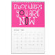 Bon calendrier de vibes avec un message positif pour chaque mois de l'année en audacieuse typographie décalée. Les couvertures avant et arrière ont un arrière - plan noir, et à l'intérieur rose chaud, avec typographie blanche avec des reflets roses chauds ou noirs en conséquence. Vous pouvez modifier les couleurs de l'arrière - plan si vous le souhaitez via l'option Cliquez pour Customiser plus.