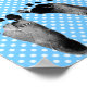 Empreintes de pieds de bébé noires sur fond à pois bleu et blanc pour jeu de Baby Shower.