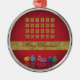 Illustration Joyeux Noël avec un calendrier de l'avent et des baules colorées de Noël sur un arrière - plan rouge.