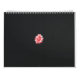 Le design présente une représentation graphique d'une fleur avec de nombreux pétales. Les pétales sont dépeints avec des traits de griffes rouges, donnant l'impression d'un croquis ou d'une peinture abstraite. Au centre, un motif circulaire dans les tons rose et violet évoque le coeur de la fleur. L'arrière - plan est blanc clair, ce qui contraste avec le rouge vif des pétales.