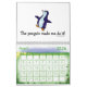 Calendrier drôle de pingouin. Chaque page a une image/bande dessinée différentes des pingouins avec des énonciations drôles. Garanti de mettre un sourire sur votre visage et de vous inciter à rire chaque mois de l'année. Le texte peut être changé/customisé. Vont ainsi en avant les amants de pingouin, personnalisent un calendrier que vous apprécierez toute l'année.