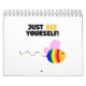 Un gay pride coloré abeille avec le texte "Juste abeille toi-même".