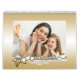 Calendrier photo moderne et tendance avec typographie manuscrite en or. Customisez avec vos photos préférées et votre texte personnalisé. Lorsque vous remplacez l'exemple d'images pour chaque mois, il apparaîtra automatiquement dans une grille située sur la couverture arrière. Un cadeau parfait pour les membres de votre famille pour commencer la nouvelle année.