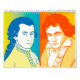 Douze compositeurs, trois peintres... Le résultat est un calendrier passionnant avec des compositeurs pour les plus jeunes amateurs de musique âgés de 25 ans et plus, jeunes, cool et à la mode. Les dessins sont ce que ces portraits des musiciens sont appelés, et tous sont basés sur les peintures bien connues de vieux maîtres comme Haussmann et Stieler. Si vous regardez Verdi, Beethoven et Strauss, et Liszt, vous découvrirez les anciens originaux. Le calendrier des compositeurs a une touche de "Warhol". Les "compositeurs participants" sont Brahms, Handel, Weber, Bach, Verdi, Mozart, Beethoven, Haydn, Liszt, Tchaikowski, Johann Strauss (fils) et enfin Wagner. Ce calendrier est le cadeau de musique parfait pour les amateurs de musique.
