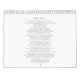 Psaume minimaliste 91 Calendrier des écritures chrétiennes en noir et blanc. Belle écriture en texte noir minimaliste sur blanc avec un cadre rectangulaire gris fusain mince. Chaque mois comporte un ou deux vers du psaume 91. Pratique pour ceux qui veulent passer un an à méditer sur les paroles du Psaume 91. Le capot avant est doté d'un modèle de texte scripté personnalisable, parfait pour un message court. La couverture arrière contient le texte intégral du Psaume 91. Tout le texte est personnalisable pour que vous puissiez le remplacer par vos propres écritures ou traductions préférées. Je ferais un beau cadeau. Nous vous invitations à visiter notre magasin Zazzle, Simon & Grace pour les produits correspondants et plus encore. Veuillez nous contacter si vous avez besoin d'aide.