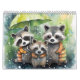 There are 12 pictures of Raccoons and Mice holding umbrellas in the rain