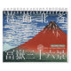 冨 嶽 三 六 (Trente-six vues du Mont Fuji) a été créé par 葛 (Katsushika Hokusai) [1760-1849], un artiste ukiyoe qui a utilisé le Mont Fuji comme sujet de discussion. Il s'agit d'une collection de coupes de bois paysannes qui express de façon frappante la vie et les coutumes. Ce calendrier présente 12 images soigneusement sélectionnées de la collection. note : Les images sont du domaine public, corrigées en couleur et utilisées.
