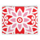 Le design se compose d'un motif symétrique mêlant rouge et blanc. Au centre, il y a un design floral stylisé avec des couches de pétales rayonnant vers l’extérieur. Ce motif central est entouré d'éléments tourbillonnants et de formes décoratives supplémentaires, créant un aspect équilibré et harmonieux. L'utilisation de seulement deux couleurs rend le design complexe se démarque magnifiquement.