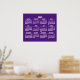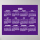 Calendrier annuel 2023 avec texte blanc sur fond violet. Les dimensions de l'affiche sont de 24 pouces sur 20 pouces (horizontal).