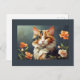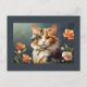 Calico cat and flowers postcard