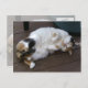 Calico cat curled up on the decking Postcard for a cat lover